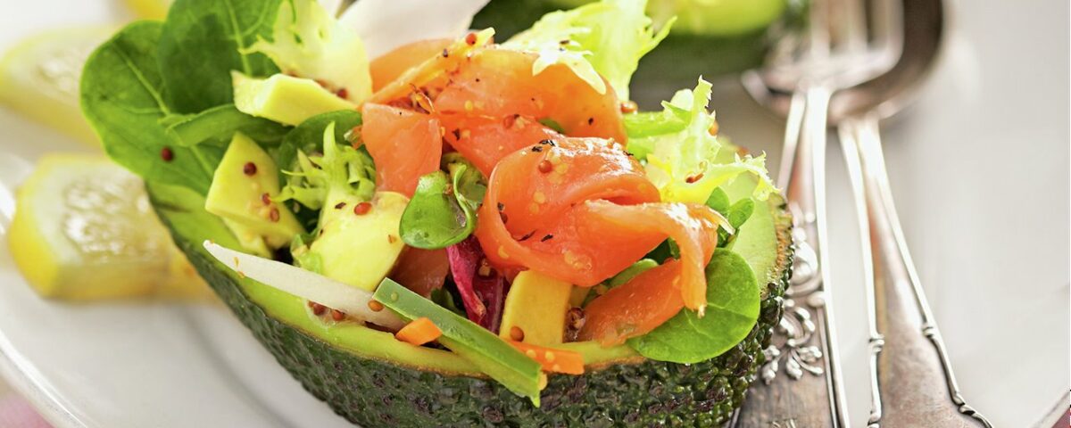 Aguacate relleno con salmón ahumado, un entrante fresco, delicioso y con ingredientes que siempre …