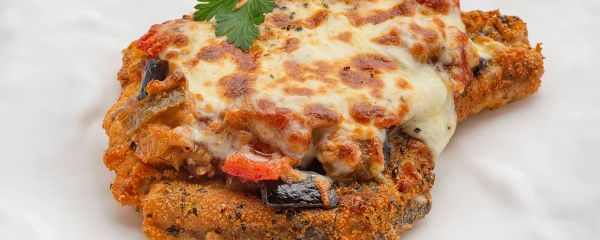 - Gratina: Precalienta el horno a 200-220 °C (modo grill o arriba). Coloca las milanesas fritas en una bandeja de horno. Cubre cada una generosamente con la sanfaina caliente. Espolvorea mozzarella rallada por encima y un poco de pimienta molida. Gratina en el horno hasta que el queso se funda y se dore ligeramente (unos 5-8 minutos, vigila para que no se queme).