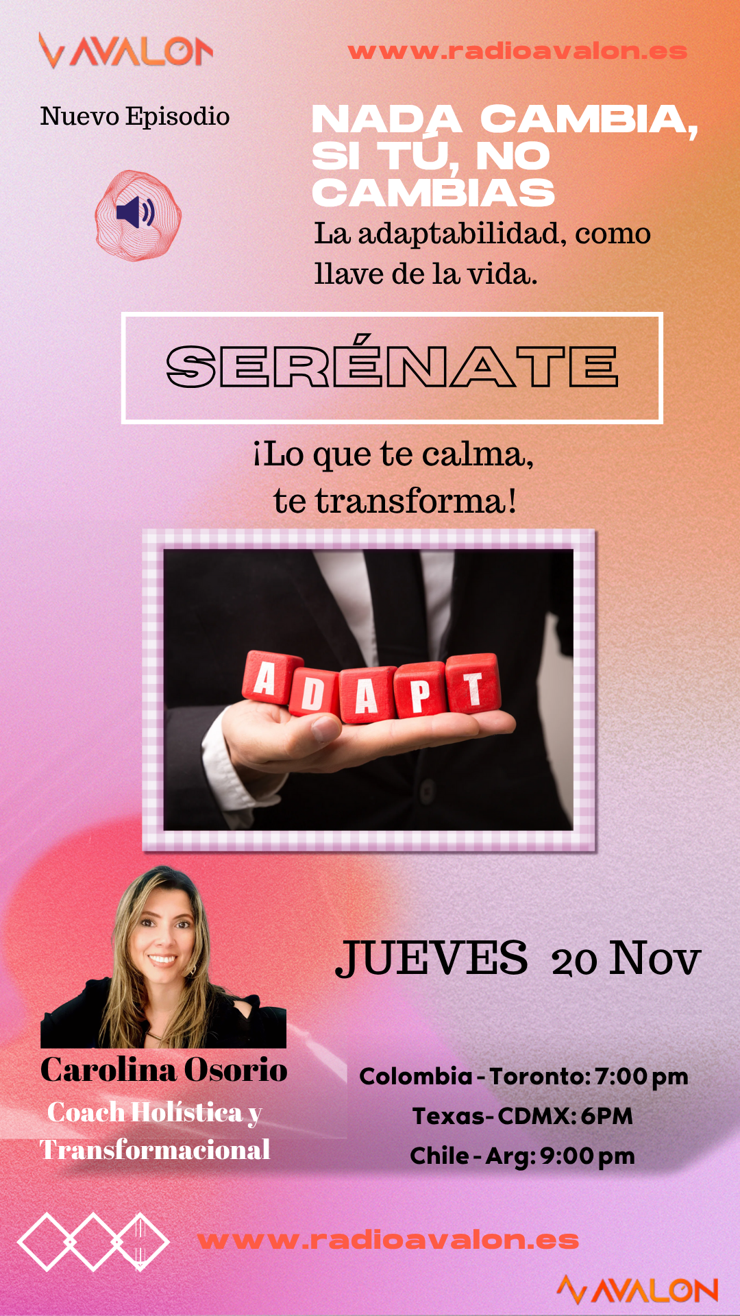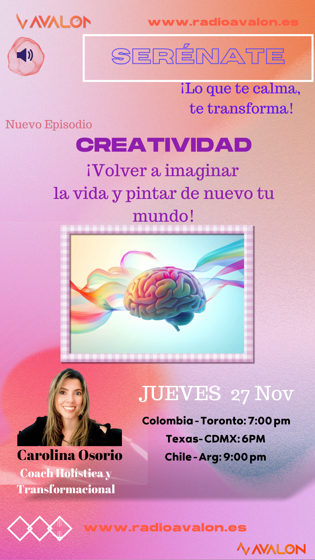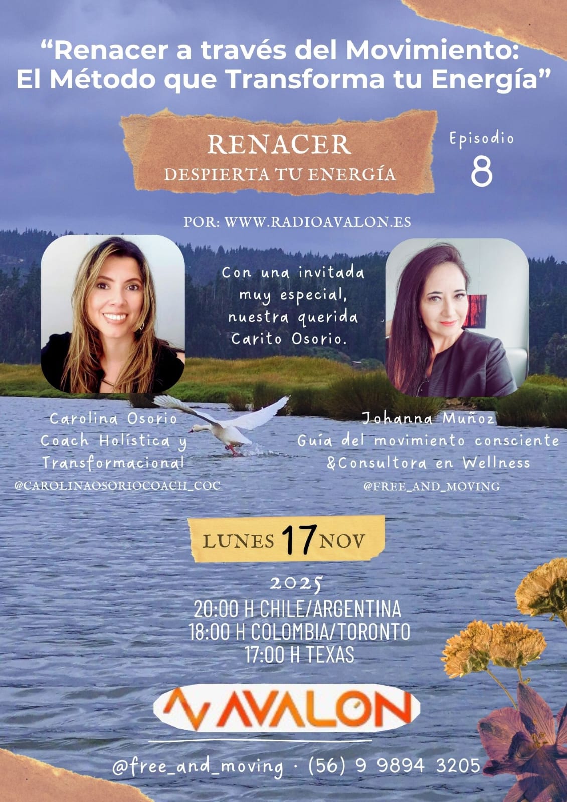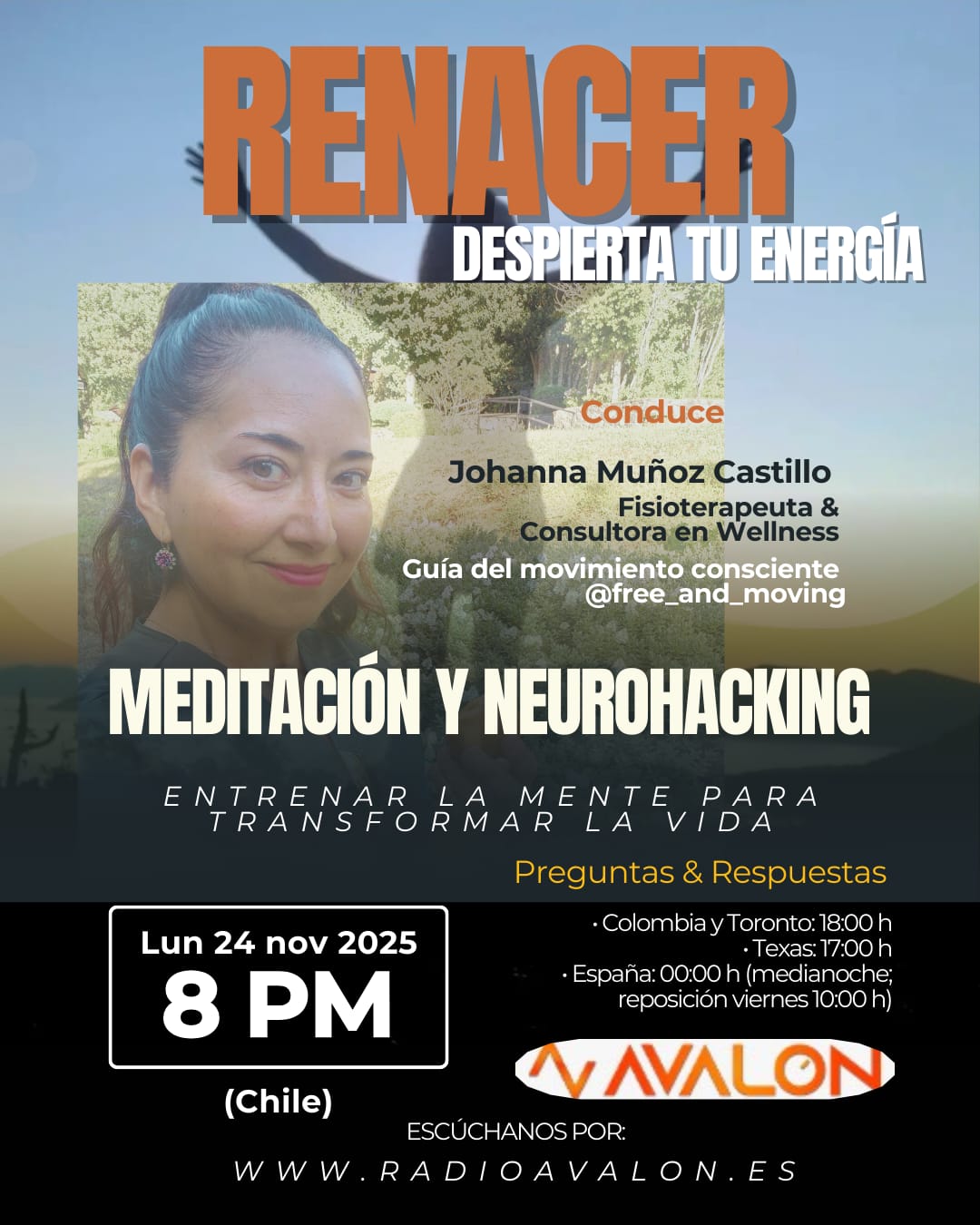 Renacer a través del Movimiento: El método que transforma tu energía Lunes 17 de noviembre, Radio Avalon Este lunes 17 te invitamos a un episodio muy […]