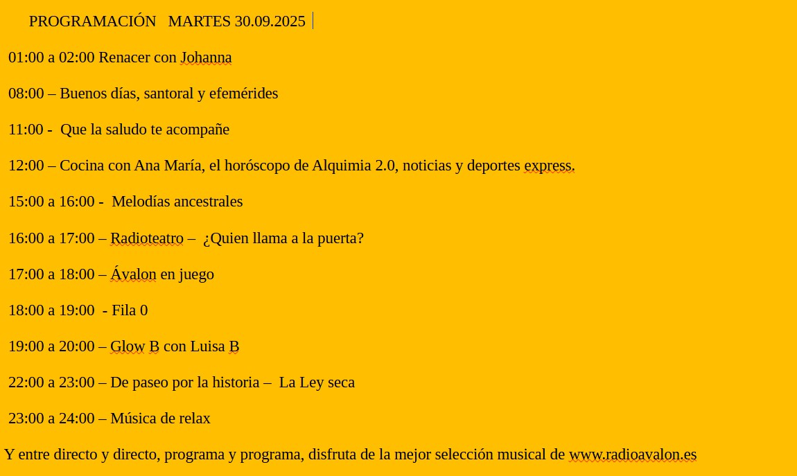 RENACER Este lunes 29 de septiembre de 2025 damos inicio a un nuevo espacio en Radio Avalon: RENACER,Despierta tu Energía, un programa creado para inspirarte a […]