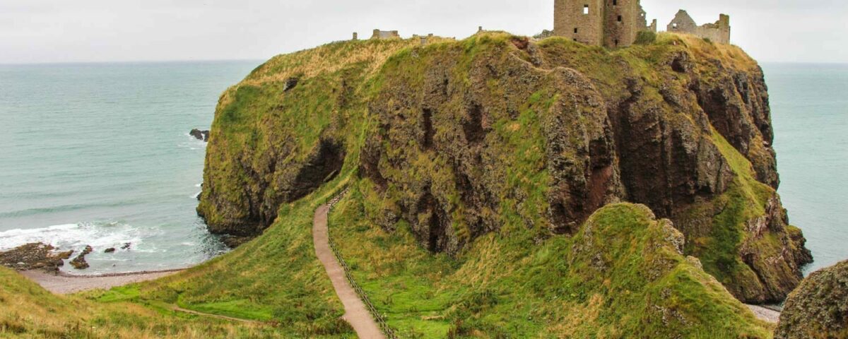Este castillo hoy abandonado fue construido entre el siglo XIV y XV en Stonehaven al norte de Escocia y en un acantilado, lo que le ofrecía muchos privilegios tanto por mar como por tierra durante la Edad Media.