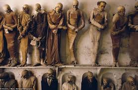 Poco a poco, ser enterrado en las catacumbas se convirtió en tradición local, que podía cumplirse gracias a un Decreto de la Santa Sede de 1637 que concedió permiso a los capuchinos para enterrar en sus cementerios a extraños de la Orden, y muchos eran los que dejaban instrucciones respecto a la ropa que deseaban lucir después de muertos. Así se fueron reuniendo aproximadamente un total de 8.000 cadáveres que se exponen como si de una galería de la muerte se tratase. Muchos de ellos, también fueron embalsamados con diferentes métodos.