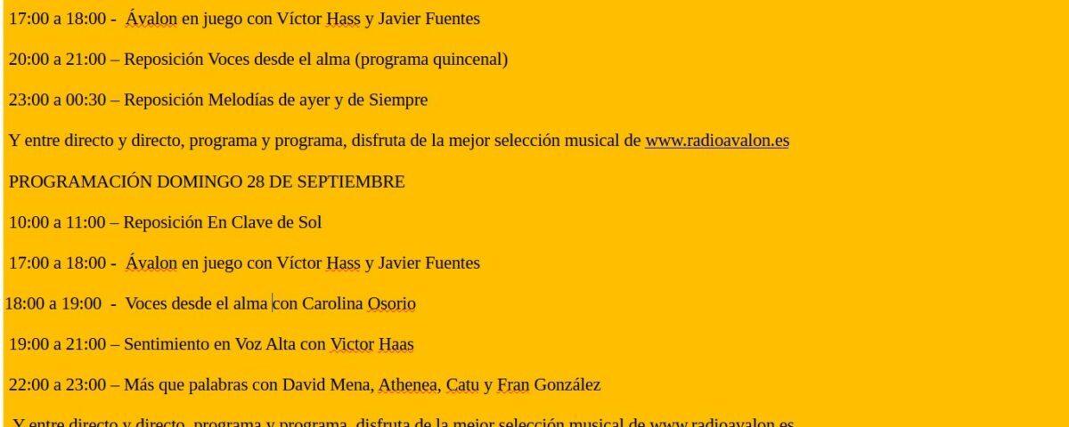 Crema pastelera de Limon26 de septiembre de 2025El Caminito del Rey: Ruta de Senderismo en Málaga27 de septiembre de 2025 Show all Programación fin de semana Share Fran González Formador, escritor, comunicador y divulgador. Página de Autor: https://t.co/iI2m5IUqpv Related posts9 de noviembre de 2025Ruta senderismo en Castril.Read more Deja una respuesta Cancelar la respuestaTu dirección de correo electrónico no será publicada. Los campos obligatorios están marcados con *Comentario * Nombre * Correo electrónico * Web Guarda mi nombre, correo electrónico y web en este navegador para la próxima vez que comente.