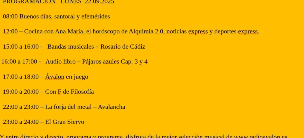 Paranormal Activity, una saga desconcertante21 de septiembre de 2025TOMÁS DE TORQUEMADA22 de septiembre de 2025 Show all Programación Lunes 22.09 Share Fran González Formador, escritor, comunicador y divulgador. Página de Autor: https://t.co/iI2m5IUqpv Related posts9 de noviembre de 2025Ruta senderismo en Castril.Read more Deja una respuesta Cancelar la respuestaTu dirección de correo electrónico no será publicada. Los campos obligatorios están marcados con *Comentario * Nombre * Correo electrónico * Web Guarda mi nombre, correo electrónico y web en este navegador para la próxima vez que comente.