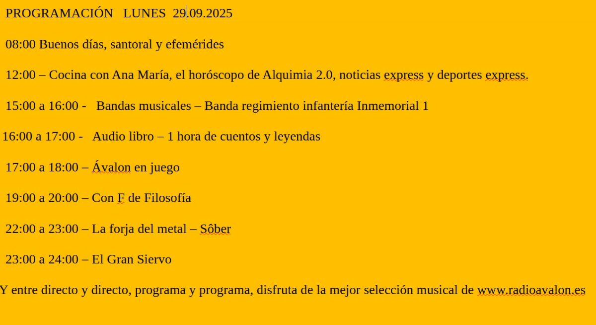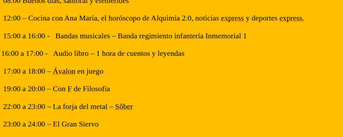 Las Ampollas de Lorenzini28 de septiembre de 2025Sober29 de septiembre de 2025 Show all Programación lunes 29.09 Share Fran González Formador, escritor, comunicador y divulgador. Página de Autor: https://t.co/iI2m5IUqpv Related posts9 de noviembre de 2025Ruta senderismo en Castril.Read more Deja una respuesta Cancelar la respuestaTu dirección de correo electrónico no será publicada. Los campos obligatorios están marcados con *Comentario * Nombre * Correo electrónico * Web Guarda mi nombre, correo electrónico y web en este navegador para la próxima vez que comente.