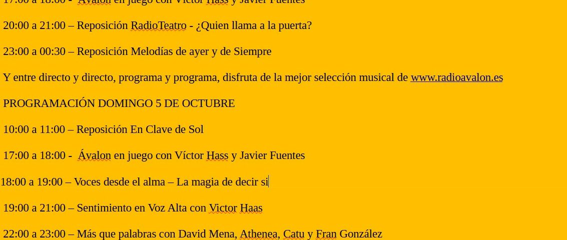 Horoscopo 03/10/253 de octubre de 2025Ruta de senderismo en Jabugo4 de octubre de 2025 Show all Programación Fin de semana Share Fran González Formador, escritor, comunicador y divulgador. Página de Autor: https://t.co/iI2m5IUqpv Related posts9 de noviembre de 2025Ruta senderismo en Castril.Read more Deja una respuesta Cancelar la respuestaTu dirección de correo electrónico no será publicada. Los campos obligatorios están marcados con *Comentario * Nombre * Correo electrónico * Web Guarda mi nombre, correo electrónico y web en este navegador para la próxima vez que comente.